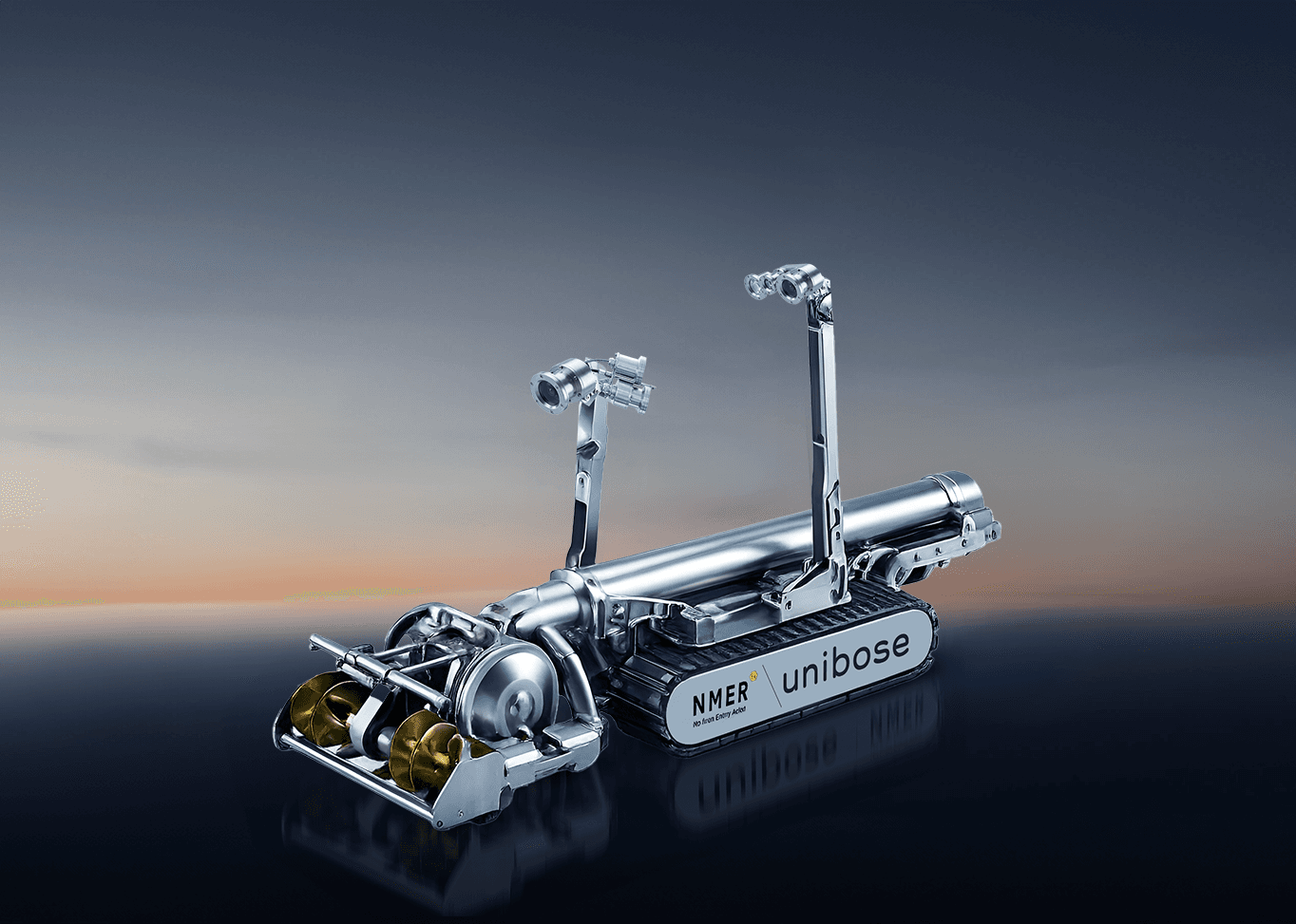 N-MER is Unibose’s flagship No-Man Entry robot for confined space tank cleaning. It is built for large oil and gas tank farms and heavy industrial assets, handling liquids, sludge, oils, fuels, chemicals, and acids without sending a single person inside.